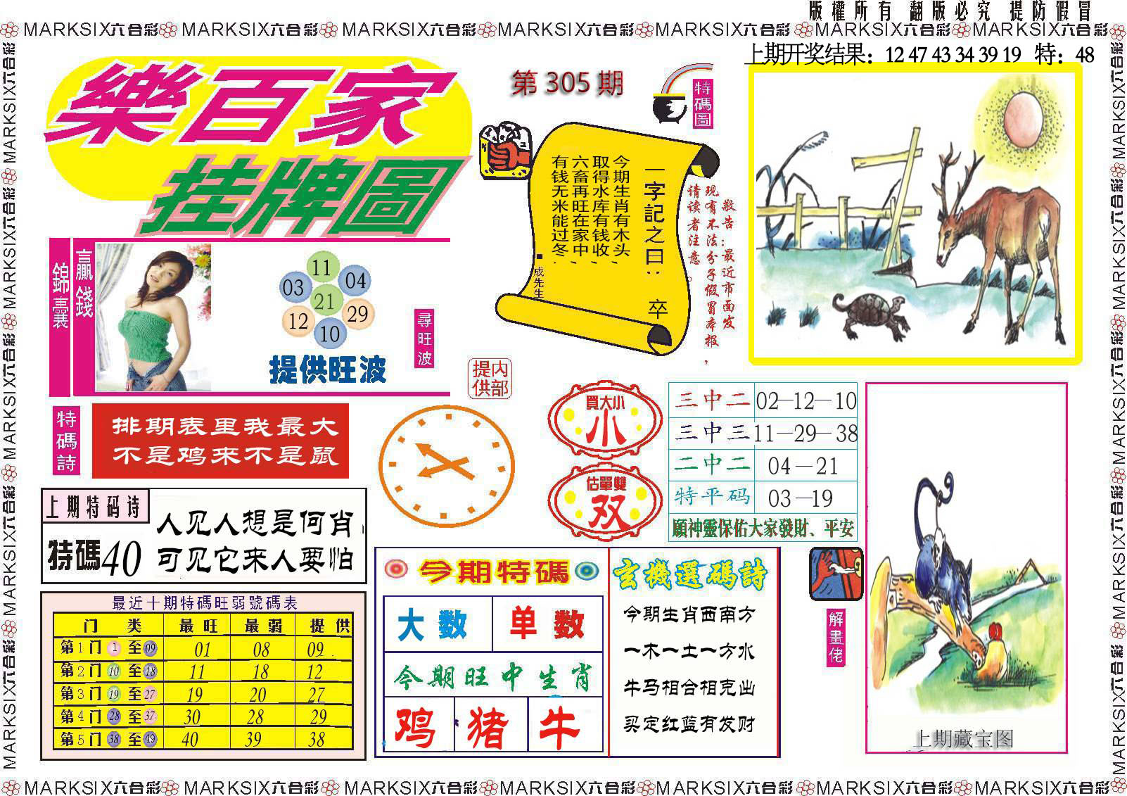 | 305期⑥肖【马兔羊狗蛇虎】开?00准 |