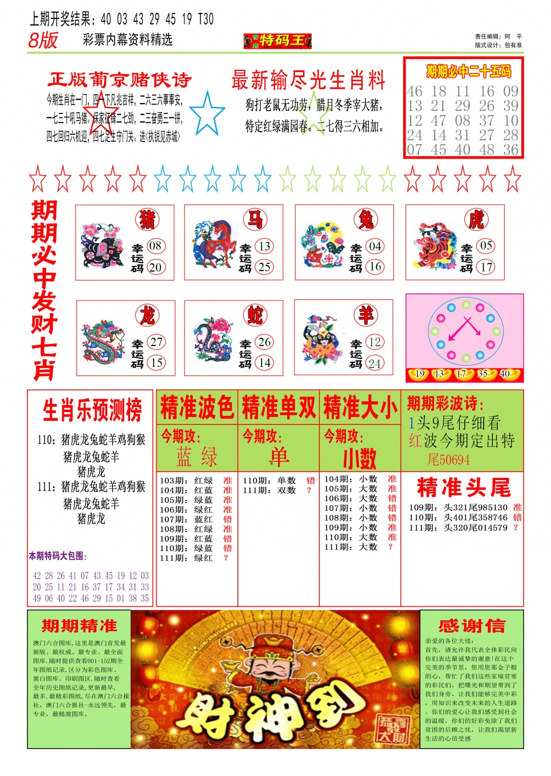 | 111期:三肖中特【猴鼠狗】开¥00准 |