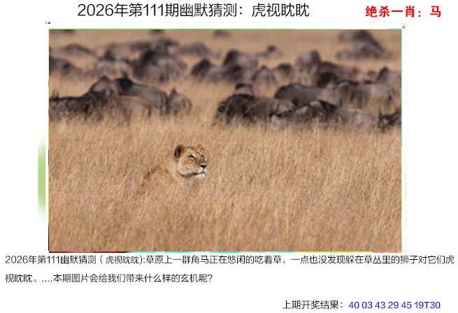 ①第111期图片猜测(虎视眈眈) 草原上一群角马正在悠闲的吃着草,一点也没发现躲在草丛里的狮子对它们虎视眈眈。..本期图片会给我们带来什么样的玄机呢? 解:虎视眈眈解凶肖虎狗牛猪鼠猴 ②第111期视频猜测(危险的鳄鱼) 鳄鱼展开大嘴飞向兔子哥哥,可把兔子哥哥吓坏了,还好黄狗警官冲过来救下了兔子哥哥,为了躲避鳄鱼,它们跑到了院子里。鳄鱼躲到了院子里的池塘准备偷袭它们,还好都跑得飞快,都躲过了鳄鱼的偷袭。.. ....本期视频会给我们带来什么样的玄机呢? 解:明肖兔 ================================= 幽默猜测综合取肖:兔虎狗牛猪鼠猴 本期猜测看好特码:40.05.33.30.20.19.47 |