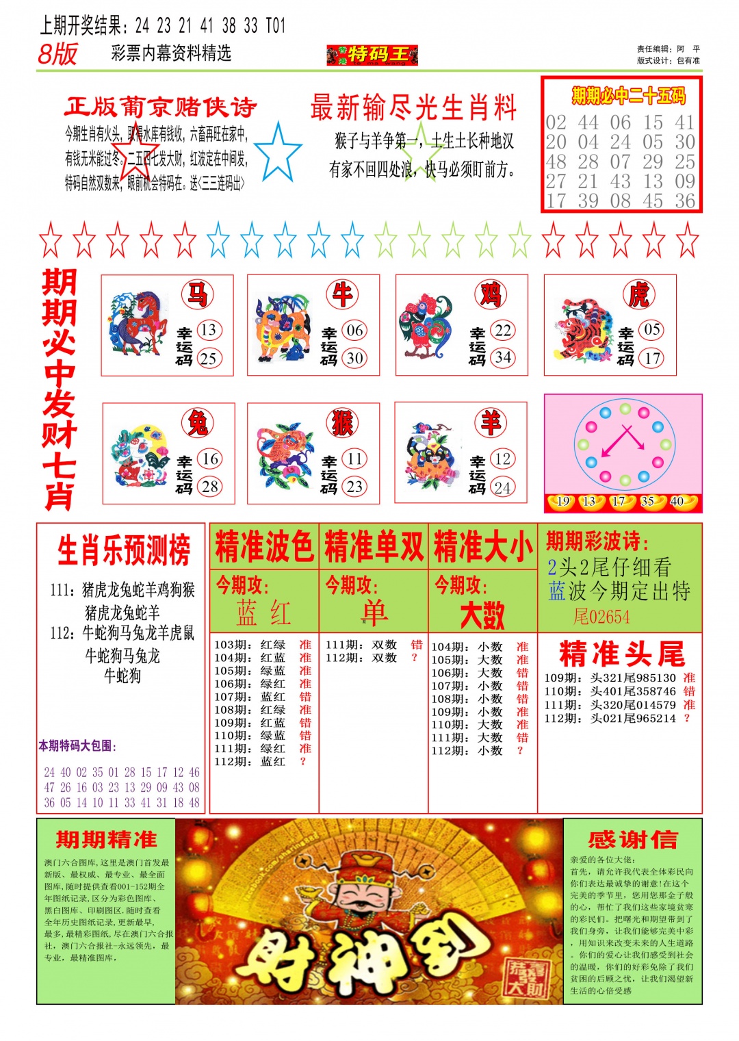 | 112期:【猪44.马01.蛇26.虎41】开?00准 |