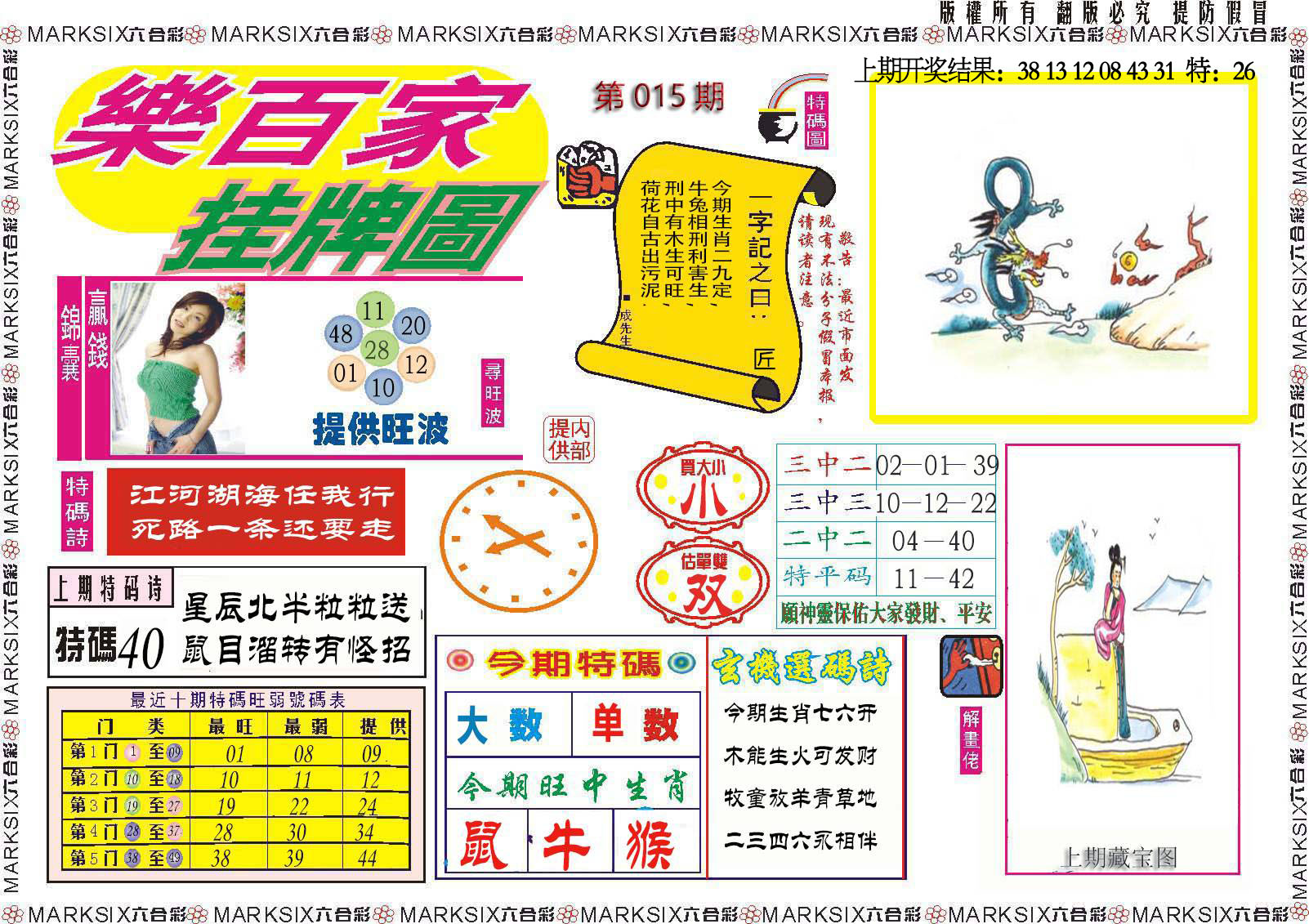 | 006期:【猴22.龙38.马12.鼠30】开蛇13准 |